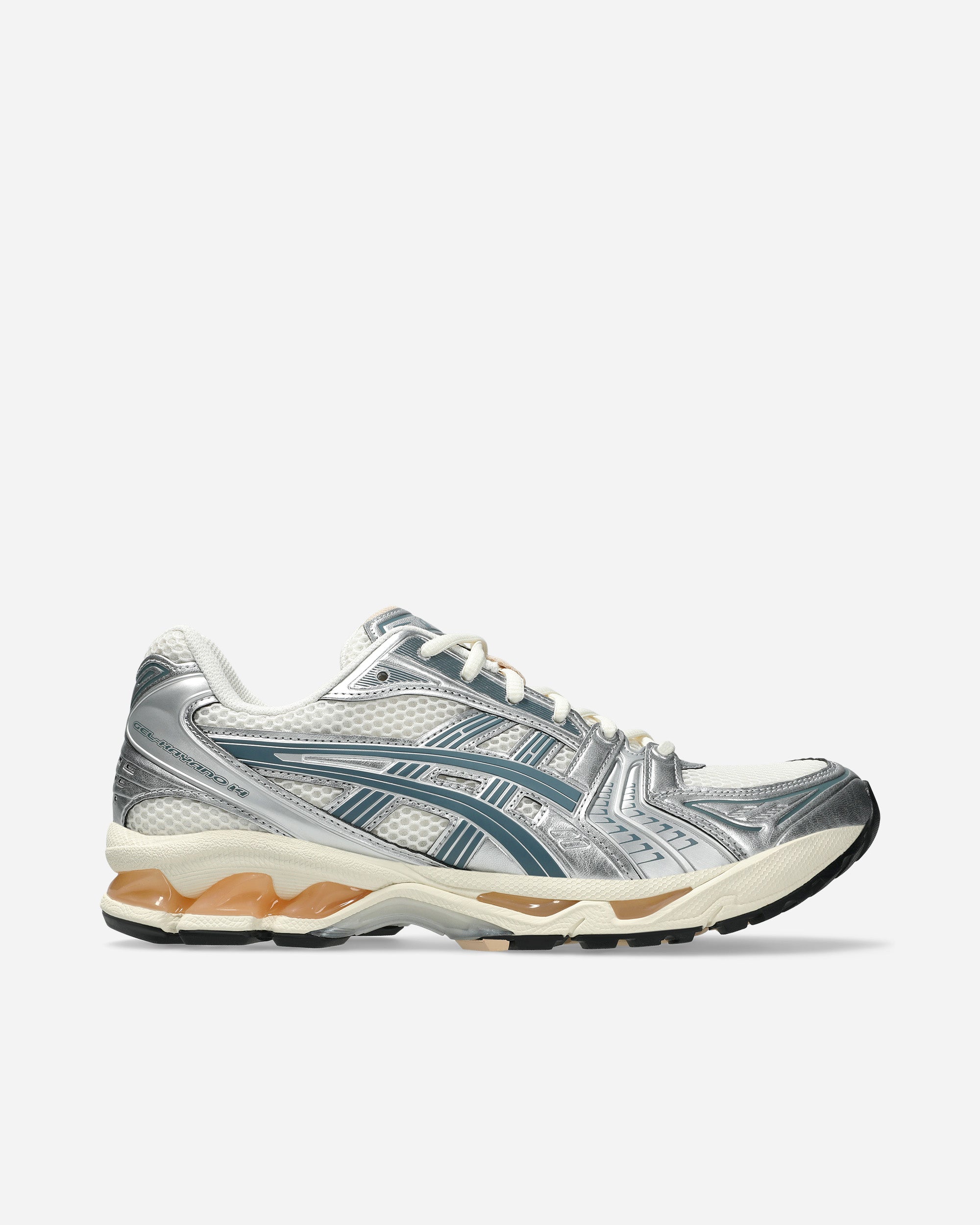 Laten we meteen ter zake komen. De ASICS GEL Kayano 14 is niet zomaar een schoen; het is als een all-star band waarin elk lid nog getalenteerder is dan de ander. Op zang hebben we een crèmekleurige mesh-basis – soepel en stijlvol, maar altijd on point. Op gitaar? Een glanzend zilveren patentleren afwerking die zo hard rockt dat andere sneakers er bijna van uit hun veters schieten.
